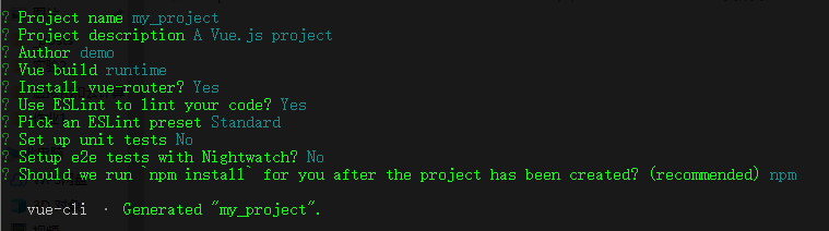 其中空格表示选中,回车确定,其配置项如下,这里我总的配置项,新建项目时会一个个选项进行询问。
