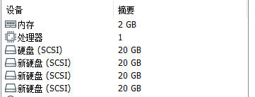 因为本次需要搭建一个raid6,因此至少需要4个硬盘。在这里我们先创建好